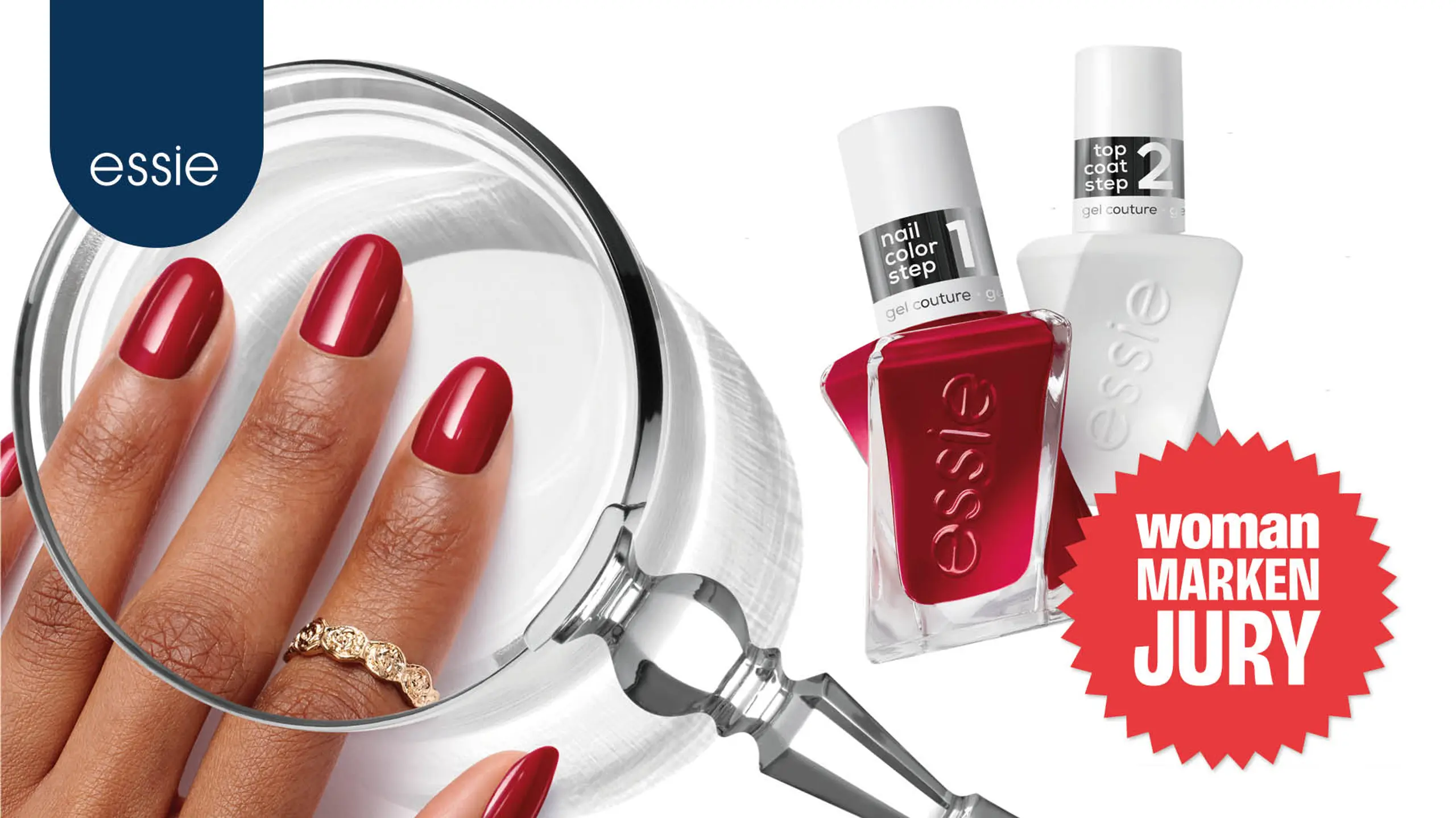 In zwei einfachen Schritten bringt „essie gel couture“ brillante Farben in Couture-Qualität auf die Nägel: Zuerst wird der Farblack in der gewünschten Nuance aufgetragen. Als perfektes Finish sorgt danach der durchsichtige „gel couture top coat“ für ultimativen Gel-Glanz und extralangen Halt. So gelingt eine Maniküre in Salonqualität ganz unkompliziert zu Hause – wie auch die Testerinnen der WOMAN Markenjury bestätigen.