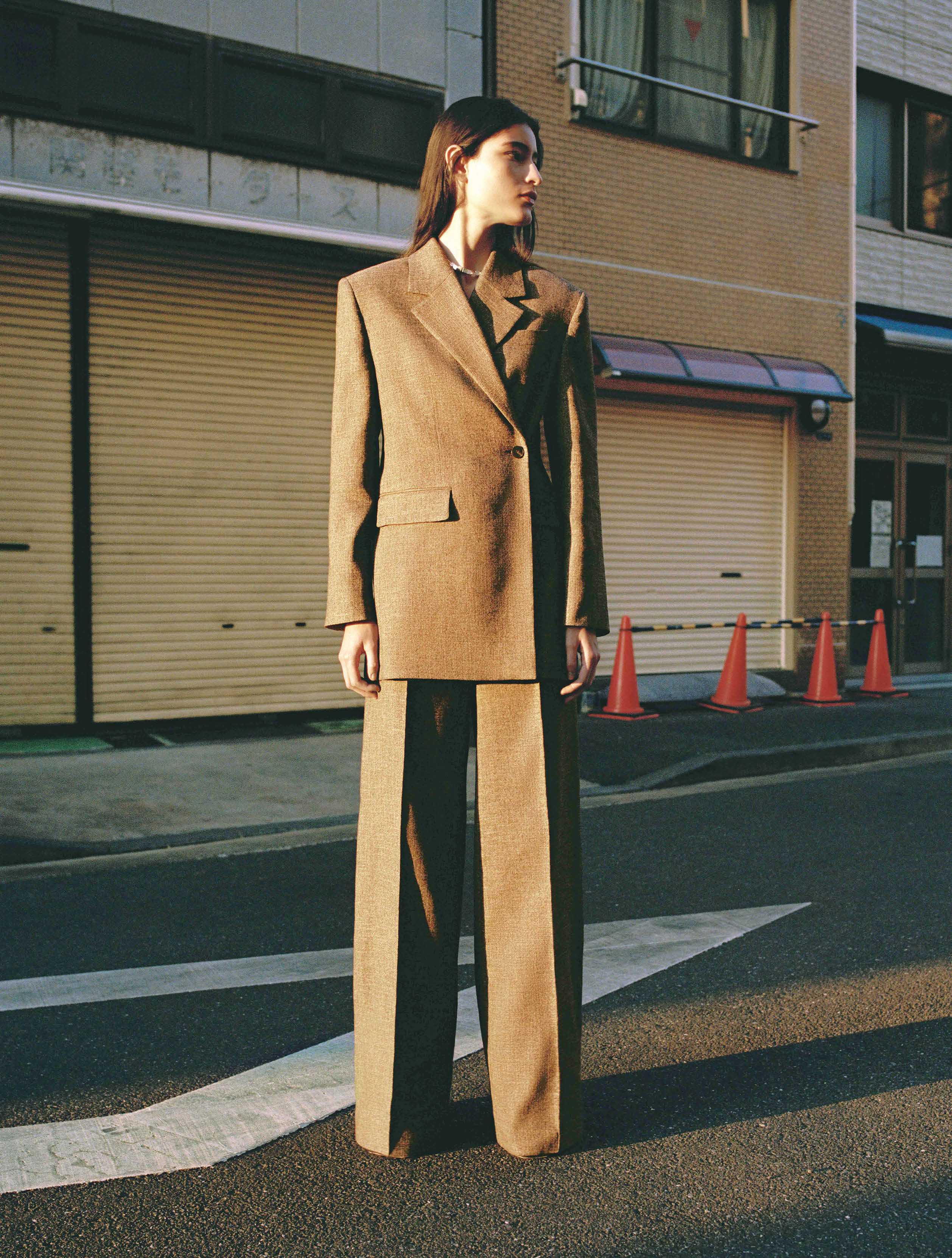 STATE OF THE ART. Die neue „Selection"-Kollektion von Mango zeigt, wie ein zeitgemäßer Hosenanzug aussieht: Extrem cleane, gerade Cuts und extralange Pants zaubern Megabeine.©Werk