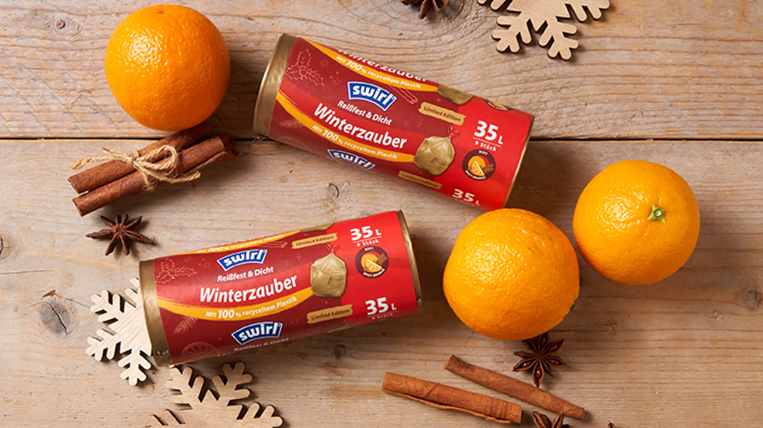 Die limitierte Winteredition von Swirl® verbindet Funktionalität mit einem Hauch von Wintermagie: Die edlen Müllbeutel in strahlendem Gold sind nicht nur ein optisches Highlight, sondern verzaubern deine Sinne mit einem angenehmen Spicy-Orange-Duft. Perfekt für die kalte Jahreszeit und weit darüber hinaus!